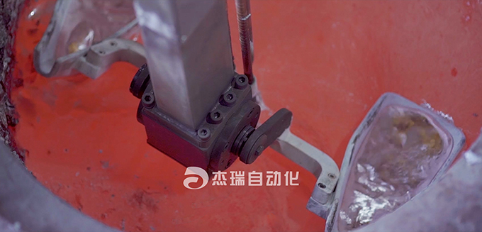 The system uses servo additional shaft structure to improve the degree of freedom of space, that the casting action is more flexible and the movement path is more optimized, easier to operate and control.