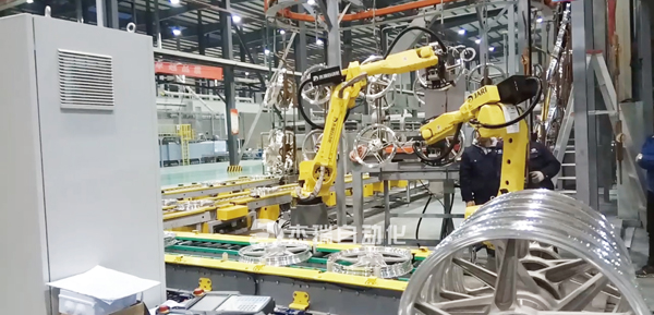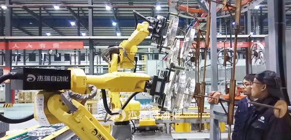 • The large robot completes the unloading of the hub on the same suspension rod. ?