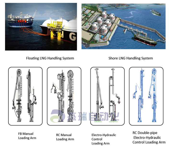 Floating LNG handling and filling solutions are provided with large aperture LNG intelligent handling, emergency detachment and safety and control integration and other key technologies to realize the implementation of automative LNG handling control between the LNG ship and FSRU and the intelligent LNG filling control for the gas powered ships, with the characteristics of broad application condition range, loading and unloading under severe conditions, short construction period, low investment cost etc..